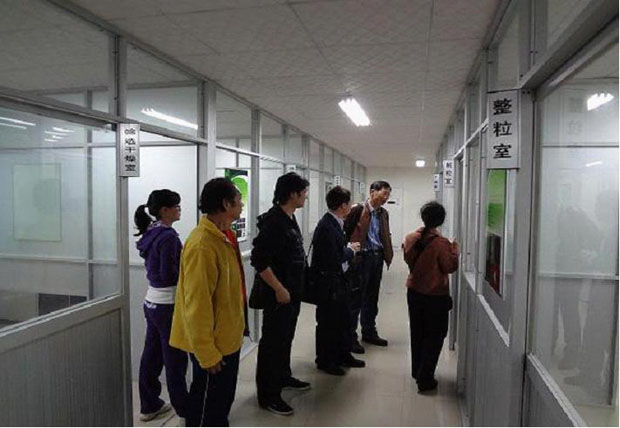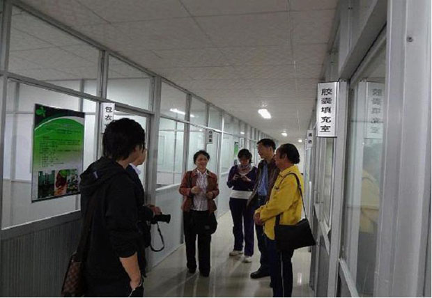 湖南中醫(yī)藥大學(xué)開設(shè)了生物工程等制藥專業(yè)。2009年,該專業(yè)技術(shù)負(fù)責(zé)人楊崧教授(男,帶眼鏡者),在考察了全國多家制藥機(jī)械廠家后,從我廠購進(jìn)了一批實(shí)驗(yàn)室制藥設(shè)備,組建模擬藥廠。該院模擬藥廠因設(shè)計(jì)合理,管理規(guī)范,許多大專院校模擬藥廠、制藥實(shí)驗(yàn)室負(fù)責(zé)人絡(luò)繹不絕到該院參觀取經(jīng)。圖為2011年9月我廠董事長、總經(jīng)理陪同湖南科技學(xué)院張敏主任(女,帶眼鏡者)一起參觀湖南中醫(yī)藥大學(xué)模擬藥廠實(shí)況。