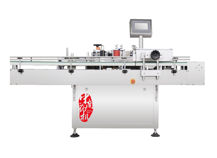 本機兼容性強,適用于各種圓形物體。需要貼標的瓶子經送瓶軌道的傳輸,通過瓶距調節(jié)機構將瓶子等距離拉開,光電傳感器感應到經過的瓶子,發(fā)出訊號,傳動系統(tǒng)得到訊號開通,開始送標,張緊系統(tǒng)實現對標紙帶的張緊,經過打碼機打碼,標紙定位光電傳感器根據標紙的長度定位,將標紙拉出一定的長度,在貼標部件和壓標部件的作用下,標紙自動剝離,平整地貼到瓶子要求的位置上,完成整個貼標過程。