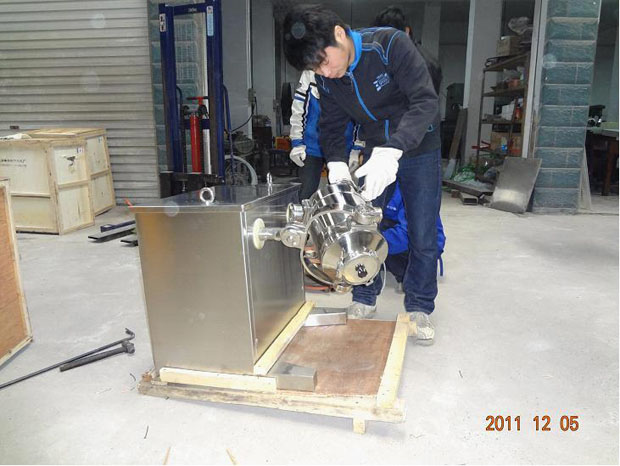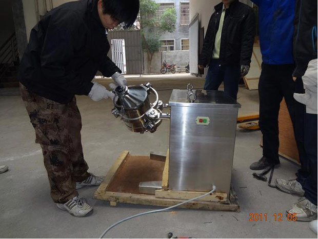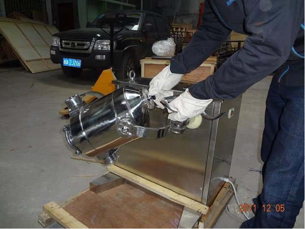 為達(dá)到三維混合,制造關(guān)鍵:在于使幾個運動關(guān)節(jié)靈活,且耐用。我廠改進(jìn)后的SWH型三維混合機(jī),運行靈活,轉(zhuǎn)動均勻,無停頓死點。因而長期受到用戶歡迎,圖為我廠工人對SWH-10型三維混合機(jī)作出廠檢測調(diào)試。