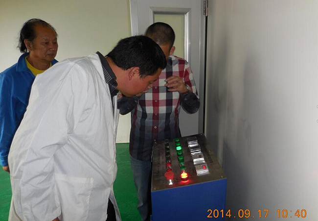 2014年9月17日,湖南省食品藥品學(xué)院購買我廠ZNTD-50型提取濃縮液機(jī)組、QTB全自動(dòng)膠囊充填機(jī)及其他設(shè)備,圖為該院胡文主老師與董事長何家寧先生在驗(yàn)收現(xiàn)場(chǎng)。