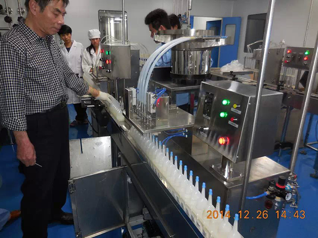 2014年12月26日,時逢毛澤東誕辰,海南皇隆制葯股份有限公司,現(xiàn)場試機驗收我廠生產(chǎn)的2條甲硝噻灌裝壓蓋生產(chǎn)線.受到公司董事長陳益智先生,常務(wù)副總何晶先生,設(shè)備部陳風(fēng)崗先生熱情接待. 該生產(chǎn)線為直線式消泡灌裝壓蓋,為國內(nèi)研發(fā)制造. 祝海南皇隆制葯股份有限公司生意興隆!