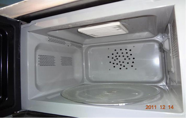 烘箱開門外貌,右側(cè)為紅外量旋鈕和微波時間控制旋鈕