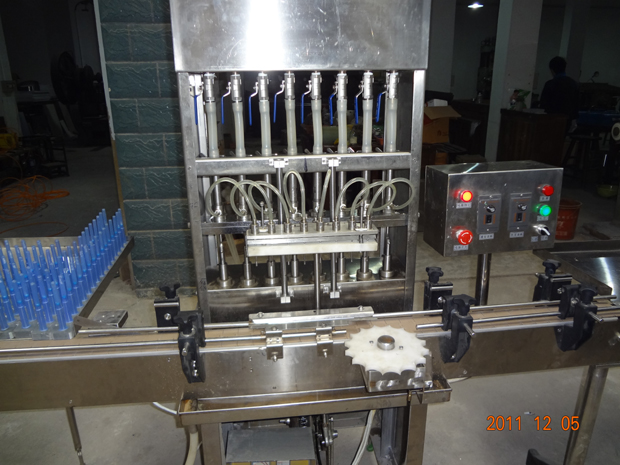 2009年,我廠董事長(zhǎng)何家寧先生發(fā)明的“GSG型膏劑栓劑灌裝機(jī)”榮獲國(guó)家創(chuàng)新基金支持(注:長(zhǎng)沙市坤一制藥機(jī)械有限公司是中南制藥機(jī)械廠下屬企業(yè),專門(mén)研制開(kāi)發(fā)高新技術(shù)項(xiàng)目。法定代表人:何家寧)。這款機(jī)器已在國(guó)內(nèi)、國(guó)外使用五年,可以灌裝液體、膏劑、凝膠、栓劑等,可以是推注式(注射器)藥具或其他形狀藥具,只要口徑大于2.4mm即可灌裝,每次灌裝8瓶。由于采用了直線式灌裝,灌裝過(guò)程平穩(wěn),對(duì)位準(zhǔn)確,劑量精密,每分鐘灌裝60-100瓶。