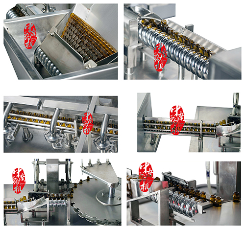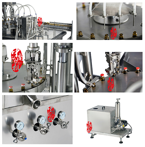 本機(jī)組為10ml-20ml口服液液體灌裝生產(chǎn)線中的主要設(shè)備,能自動(dòng)完成口服液瓶的洗瓶、烘干、灌裝和封口等動(dòng)作。
