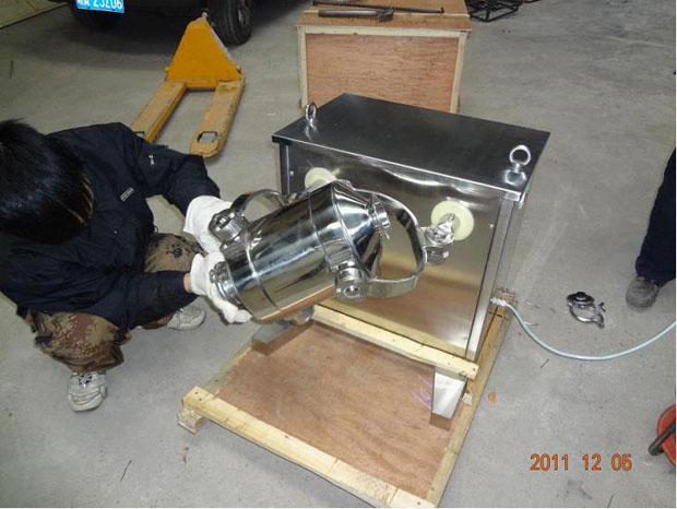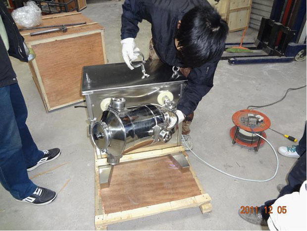 為達(dá)到三維混合,制造關(guān)鍵:在于使幾個(gè)運(yùn)動(dòng)關(guān)節(jié)靈活,且耐用。我廠改進(jìn)后的SWH型三維混合機(jī),運(yùn)行靈活,轉(zhuǎn)動(dòng)均勻,無停頓死點(diǎn)。因而長(zhǎng)期受到用戶歡迎,圖為我廠工人對(duì)SWH-10型三維混合機(jī)作出廠檢測(cè)調(diào)試。