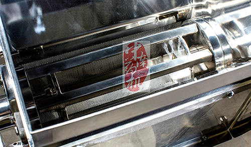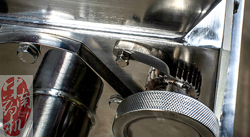 本機的最大特點之一是:制粒均勻。這是由于制粒的關(guān)健部件——七角滾筒設(shè)計、材料選擇、加工工藝好,七角滾筒上的空心三角筋,是從異形不銹鋼管廠特別定制的。制粒時,七角滾筒作搖擺往復(fù)運動,由于空心三角筋重量較實心筋輕,因而可減小因慣性產(chǎn)生的阻力,同時空心三角筋有彈性,可減少硬性碰撞。我廠采用了光學(xué)定位工模,確保七根三角筋與兩端轉(zhuǎn)軸的同心度一致,因而制出的顆粒均勻。