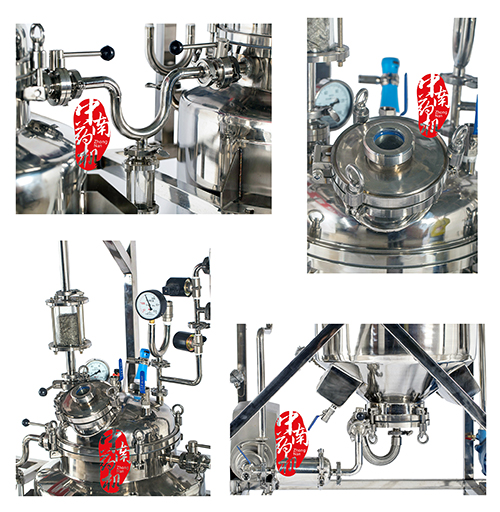 1、提取罐結(jié)構(gòu):支耳安裝,上下橢圓形封頭,夾套加熱,手動快開出渣。