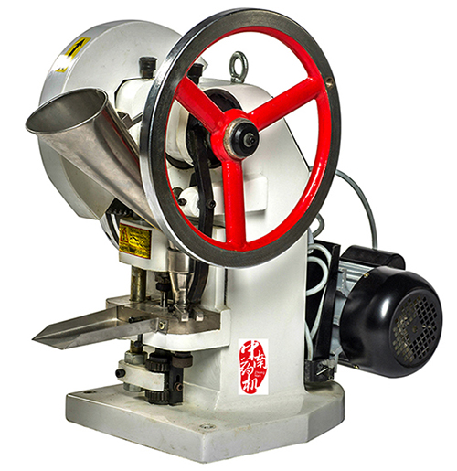 單沖壓片機(jī)用于將各種顆粒狀原料壓制成片劑,可廣泛用于制藥、化工、食品、醫(yī)院科研等單位試制成小批量生產(chǎn)各種片劑、糖片、鈣片、異形片等。其特點(diǎn)是一種小型臺(tái)式電動(dòng)連續(xù)壓片的機(jī)器,也可以手搖。具有使用方便,易于維修,體積小、重量輕,機(jī)上安裝一副沖模,物料的充填深度,壓片的壓力、厚度均可調(diào)節(jié)。