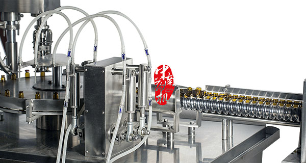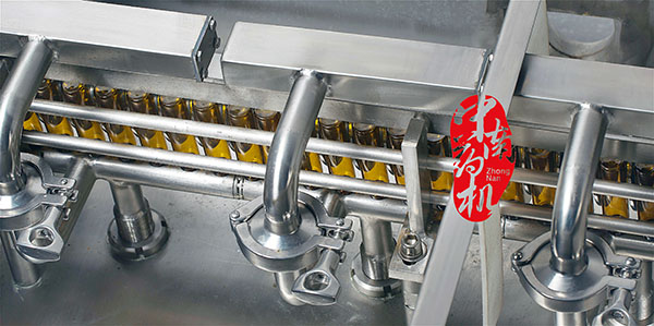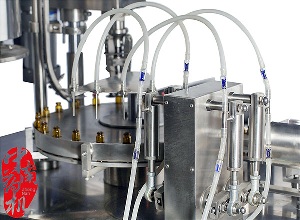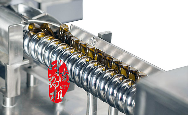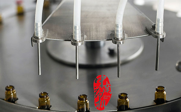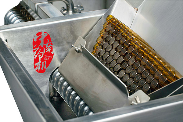 瓶子經(jīng)自來水(或回用水)及去離子水內(nèi)外沖洗,再由凈化壓縮空氣吹去表面的水珠,然后進入烘干段烘干。瓶子出烘箱,進入灌封機進行灌裝軋蓋??膳c燈檢機,貼標(biāo)機等設(shè)備連線。符合GMP要求。